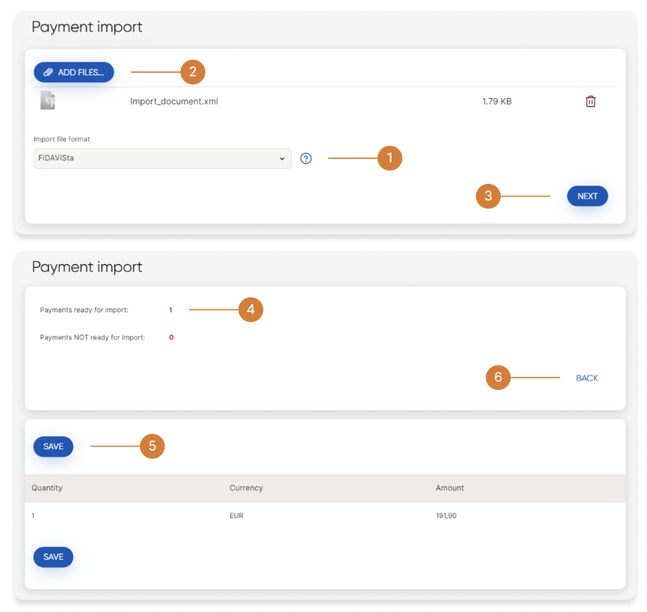 ➀ - In the payment import screen, select "FiDAViSta" as the "Import File Format" value.