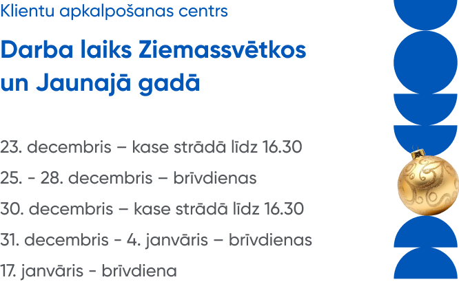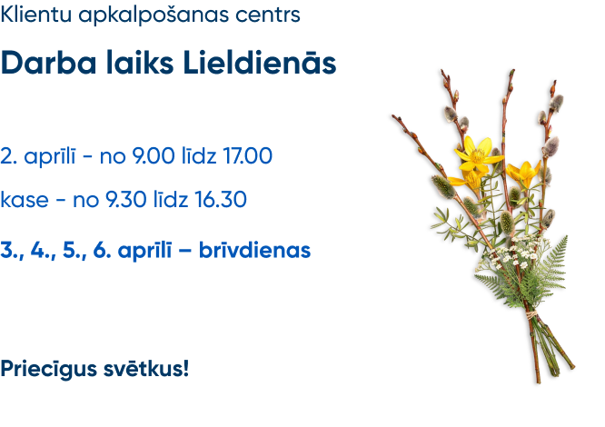 Klientu apkalpošanas centrs: 09:00 - 18:00